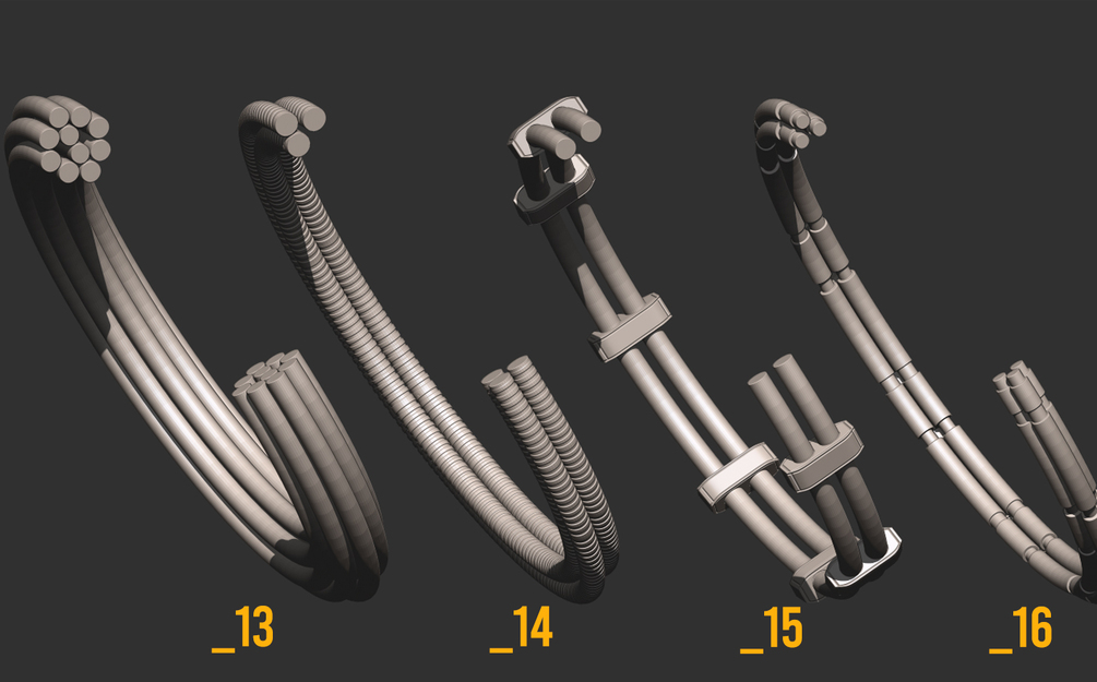 20 Cable IMM curve brush ideal for concept art/design to boost your speed at Zbrush and increase the detail of your sculpts/models, a quite good addition to your high-poly workflow.